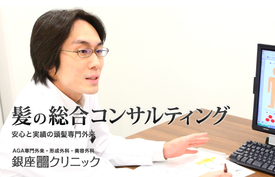 プロペシア(フィナステリド)だけでない総合的発毛治療。患者様それぞれ脱毛原因が違うように、効果の期待できる発毛手法は一人ひとり異なります。銀座総合美容クリニックの発毛治療は、薄毛改善の専門医が個人個人に必要なメニューを組み合わせたオリジナル治療を行うのが強みです。プロぺシ処方のみで「発毛」と謳う無機質な病院とは全く異なり、抜け毛・薄毛で悩む方にご満足頂ける治療内容です。
