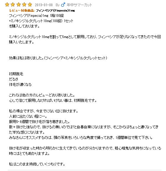 作用効果についてですが、プロペシアと同じく、「男性型脱毛症における進行の遅延」です。個人差がありますが6ヶ月がひとつの目安と言われています。この辺はプロペシアとほぼ一緒です。個人輸入で発毛を目指す方は、日々の抜け毛や頭皮の状況を観察していく必要があります。これに関しては、日本版プロペシアを使っても同じです。